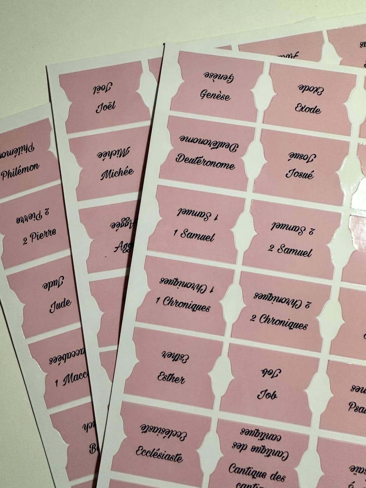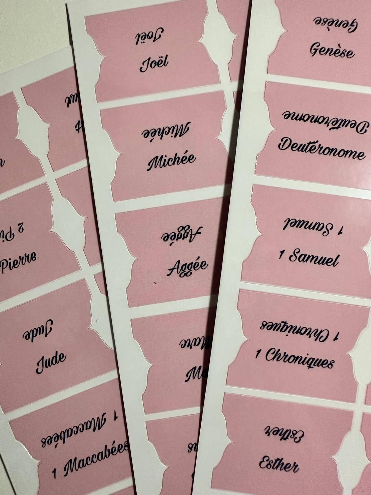 Ce pack d’onglets bibliques rose. Faciles à coller, ils vous permettent de structurer vos lectures et de retrouver rapidement vos passages préférés.